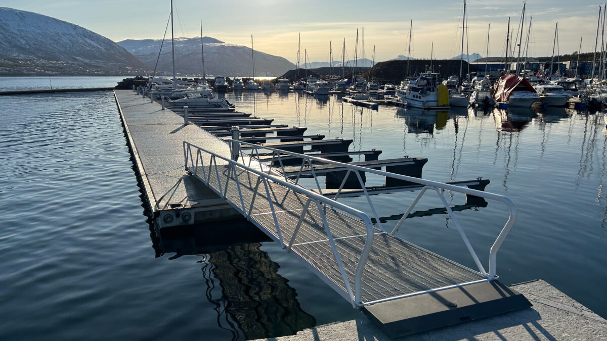 Flytbryggor är ett annat exempel på en produkt där duplex med pulverlack visat sig ge ett mycket bra skydd. Bryggorna utsätts för tuff påkänning, dels genom den ständiga korrosionsexponeringen, men även nötning från vatten och is bidrar till belastningen, och här är pulverlackens goda nötningsbeständighet en stor fördel. Skattøra Marina i Tromsø, som visas i bilden ovan, har ett flertal duplexbehandlade detaljer levererade av varmförzinkningsföretaget Vik Ørsta AS i Norge.